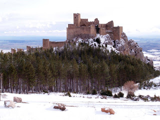 Estos días están preparando un programa sobre el Castillo de Loarre. Hoy, nevando.