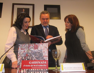 Adjunto audio de mi presentación. En la imagen con el consejero, Alfredo Boné, siguiendo las explicaciones de la autora, Montse de la Vega. audio