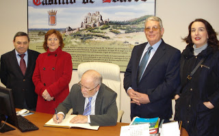 En las fotos también aparece el delegado del Gobierno en Huesca, Ramón Zapatero, con la Consejera y el Alcalde Miguel Liesa durante la firma en el libro de honor del Ayuntamiento.