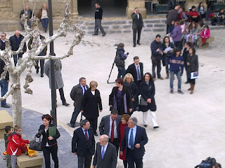 En las imágenes momento de acompañar al Secretario de Estado y en la segunda, casi un centenar de senderistas que venían desde Huesca y que han esperado para atravesar por la plaza.