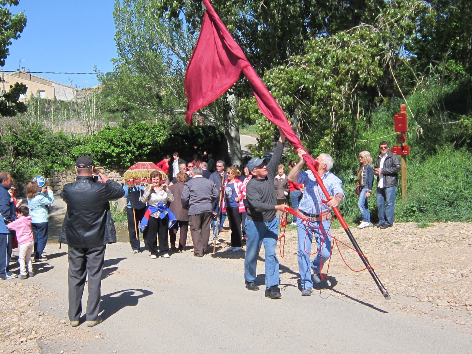 Hoy, por la mañana como todos los años la subida de las reliquias de San Demetrio y el Pendón procesional. En la imagen, acabamos de cruzar el río e iniciamos el camino al castillo.