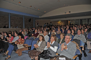 Con Susana Villacampa, Secretaria de la Asociación Una imagen de la sala, Antonio Gª Omedes en primer término Domingo Buesa durante su conferencia Con Domingo I Jornadas culturales del románico en el AltoAragón: El Castillo de Loarre Jueves 2 de diciembre, 2ª jornada del románico