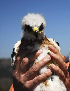 Fotos de un adulto y un pollo de perdicera, del azor adulto: Alberto Portero